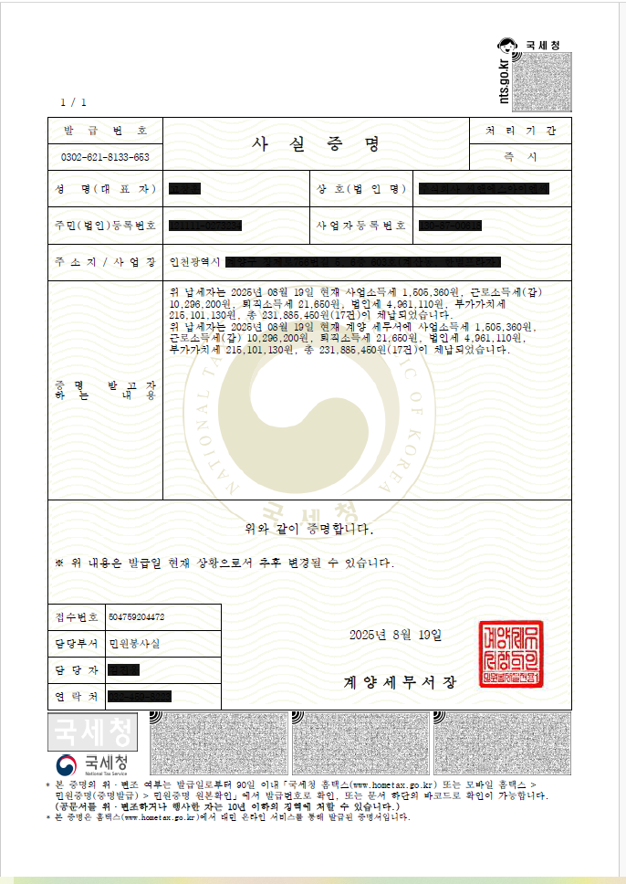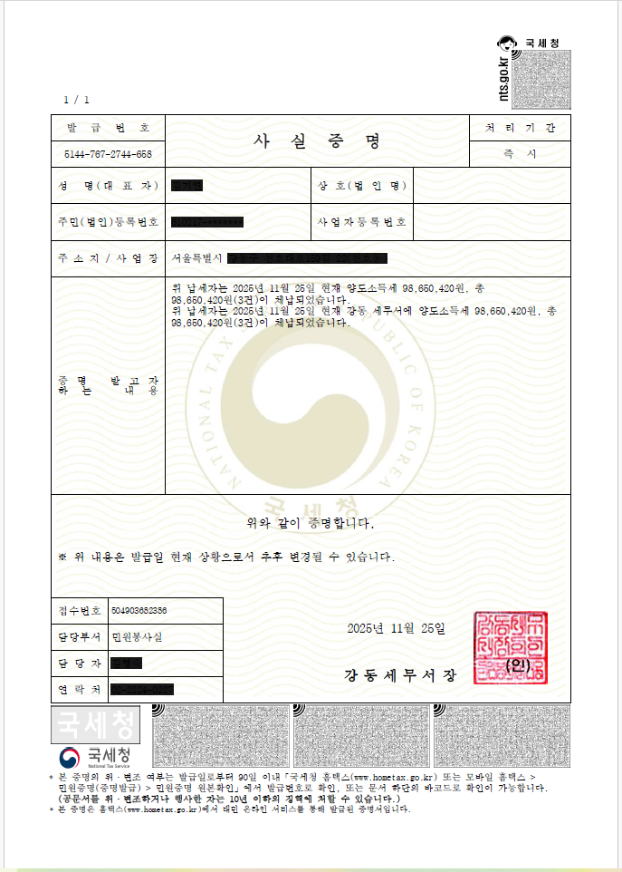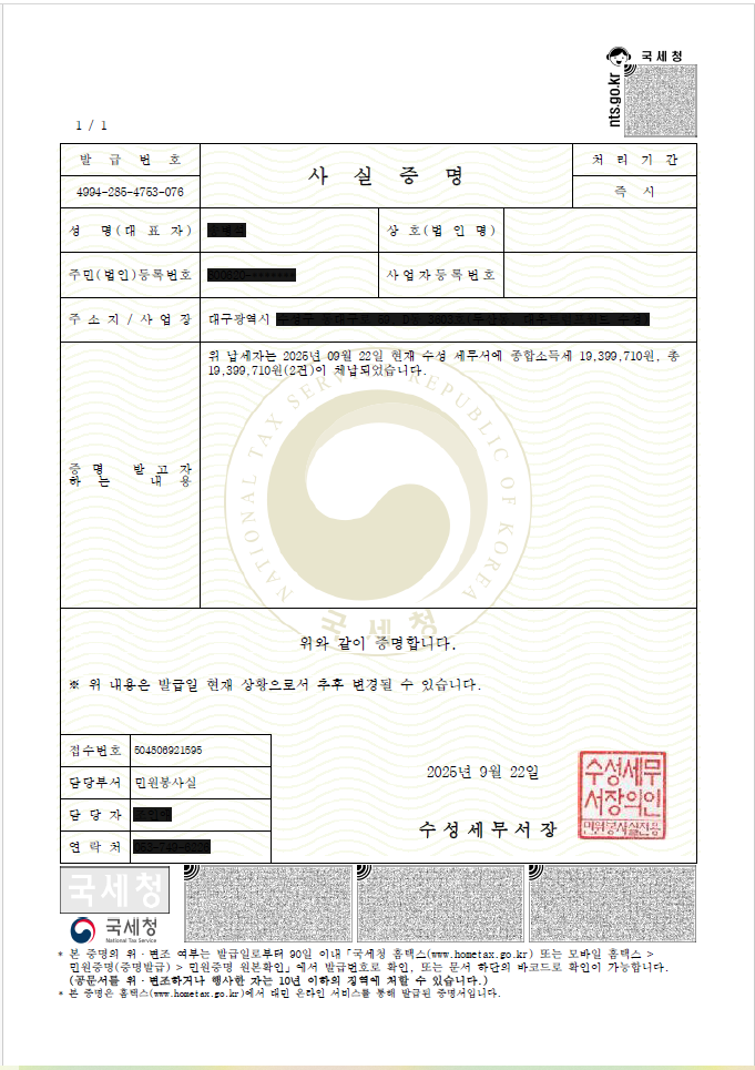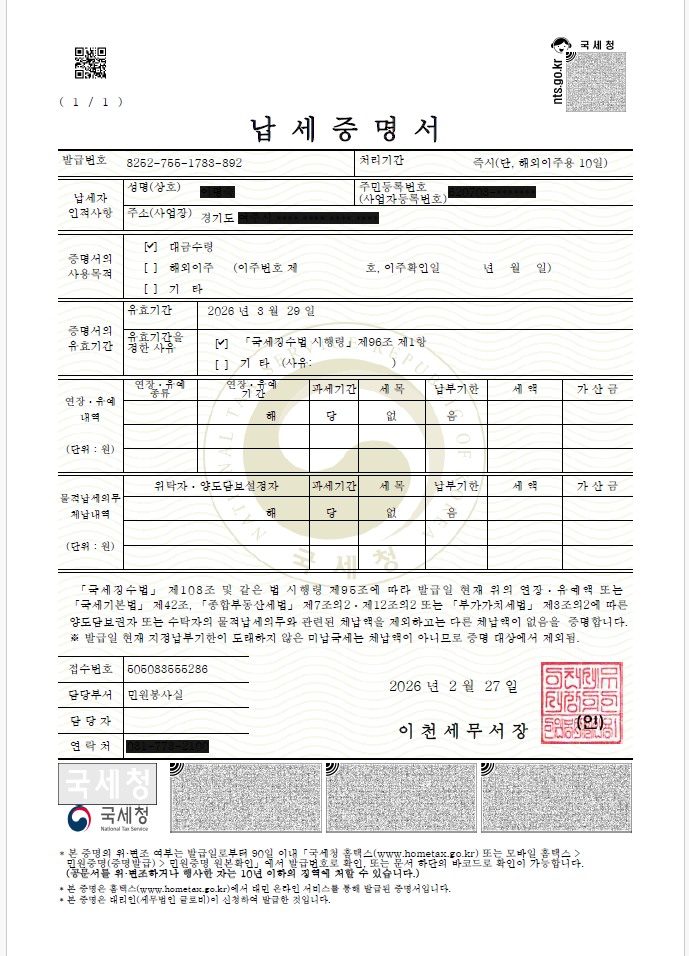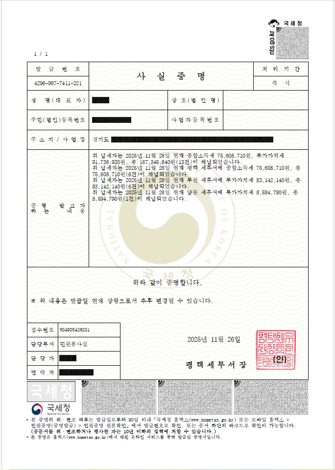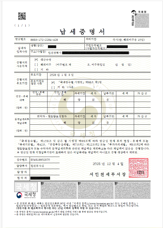 사실증명과 납세증명서로 확인하는 실제 면책 사례입니다.